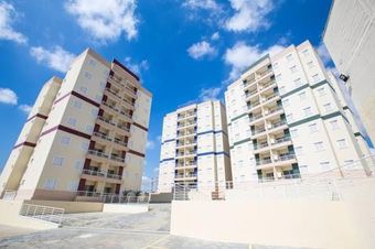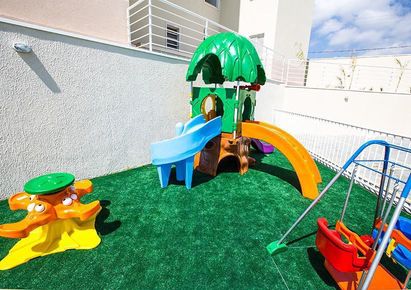 O condomínio oferece lazer completo com salão de festas, piscina e playground.