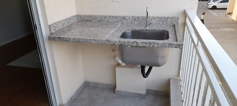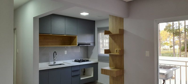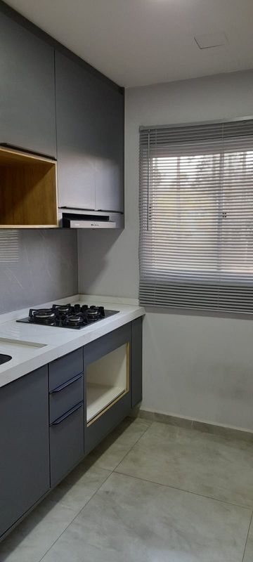 - Cozinha com armários planejados, cooktop 4 bocas e sugar